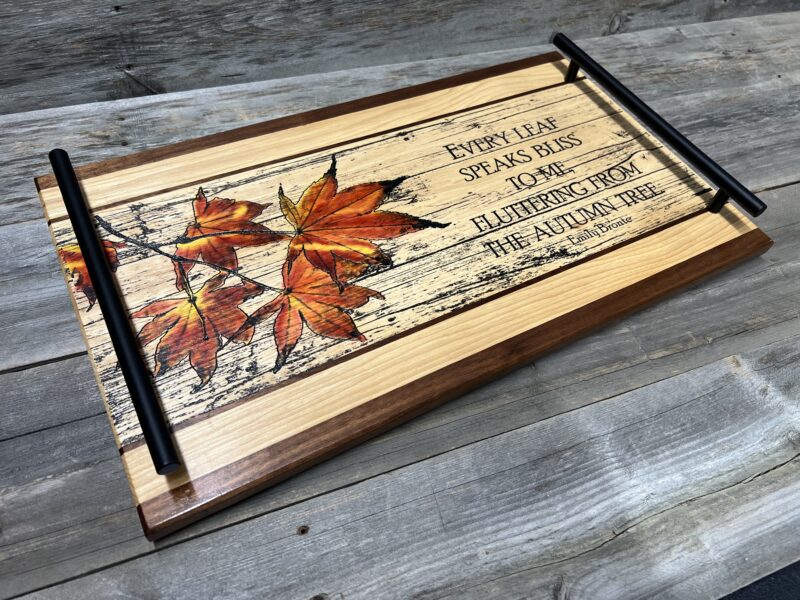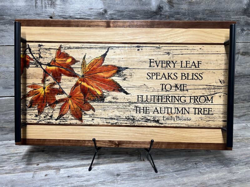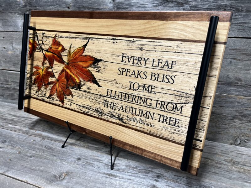 Embrace the magic of fall with this poetic Autumn Bliss Charcuterie Board & Serving Tray — featuring the timeless words of Emily Brontë that capture the season’s serene beauty. Brought to life with stunning lasered and hand-painted detail.