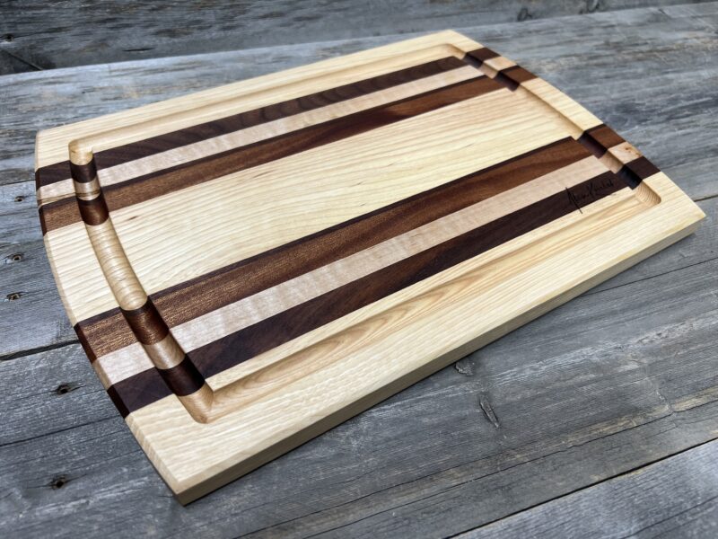 Handcrafted Hickory, Walnut, Maple, and Sapele Cutting Board