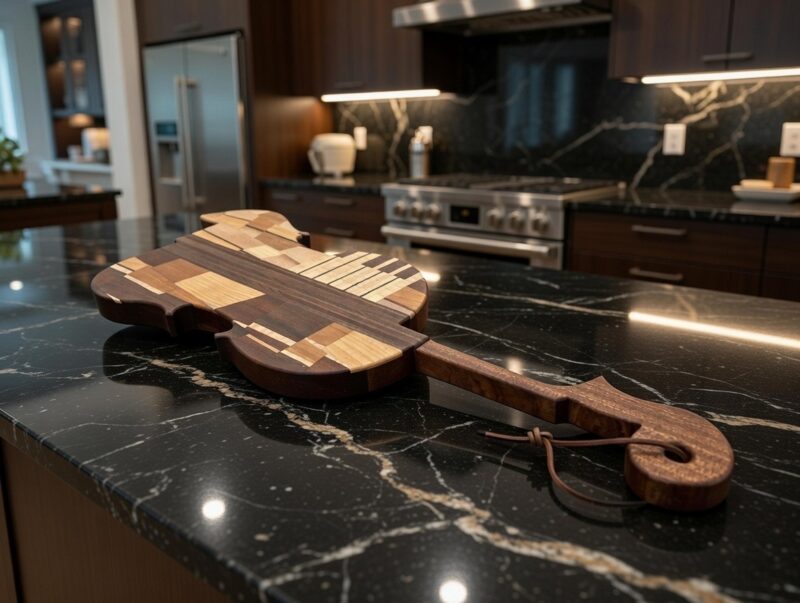 Handcrafted by Alan Kriebel Woodworking, this exquisite violin-shaped charcuterie and cutting board beautifully marries artistry with utility.