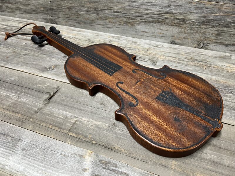 Inspired by the elegance of a Stradivarius, this exquisite Sapele violin-shaped charcuterie board is a symphony for your table. Crafted from rich, reddish-brown Sapele wood, its graceful curves, f-holes, and scroll neck capture the timeless beauty of a classical violin—perfect for displaying artisanal cheeses, cured meats, olives, and fruits without a single off-note.